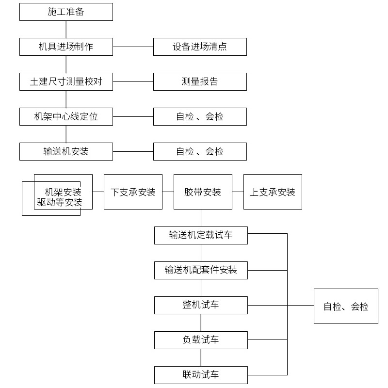 - 物資采購及檢驗控制:物資采購帶式輸送機(jī)對供貨方進(jìn)行評價、選擇信譽(yù)好、產(chǎn)品優(yōu)質(zhì)的廠家,產(chǎn)品帶式輸送機(jī)具有合格證,進(jìn)貨后帶式輸送機(jī)進(jìn)行檢驗,檢驗后進(jìn)行標(biāo)識,杜絕使用無合格證、檢驗不合格、失效的施工用料。