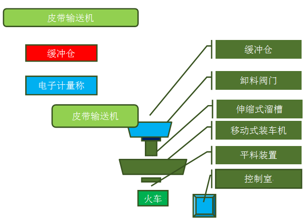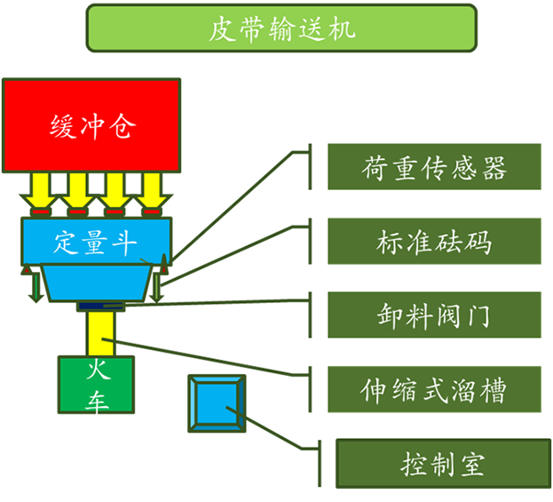 該快速定量裝車系統(tǒng)采用快速計(jì)量系統(tǒng)和移動(dòng)裝車系統(tǒng)相結(jié)合,計(jì)量系統(tǒng)采用靜態(tài)計(jì)量,精度大于5‰。該系統(tǒng)主要由輸送系統(tǒng)、計(jì)量裝車系統(tǒng)(布料機(jī)構(gòu)、緩沖料倉(cāng)、漏斗型定量倉(cāng)、稱重系統(tǒng)、鄂式配料閘門、平板閘門)、軌道移動(dòng)式裝車裝置(平倉(cāng)系統(tǒng))、控制系統(tǒng)、除塵系統(tǒng)等。 |